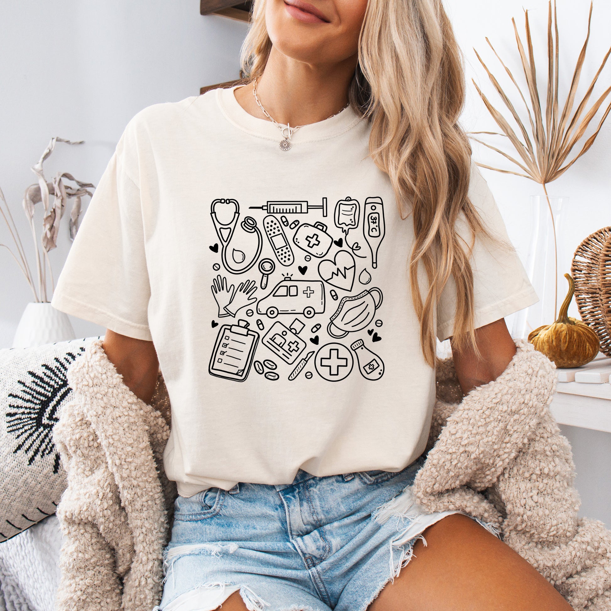 Comfort Colors® Medical Doodle T-Shirt, Healthcare Graphic Tee, Medical Student Gift, Nurse T-Shirt, Oversized Comfy T-Shirt